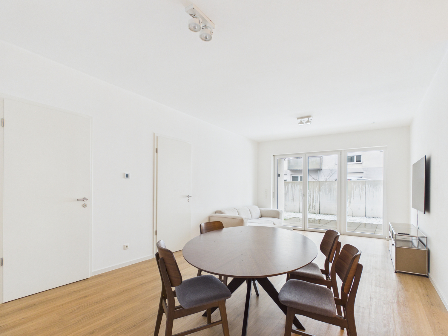 Die Wohnung ist idealerweise bereits mit folgenden hochwertigen Möbeln ausgestattet: Boxspringbett, Tisch mit 4 Stühlen, Couch, Sideboard, Kleiderschrank, Fernseher.