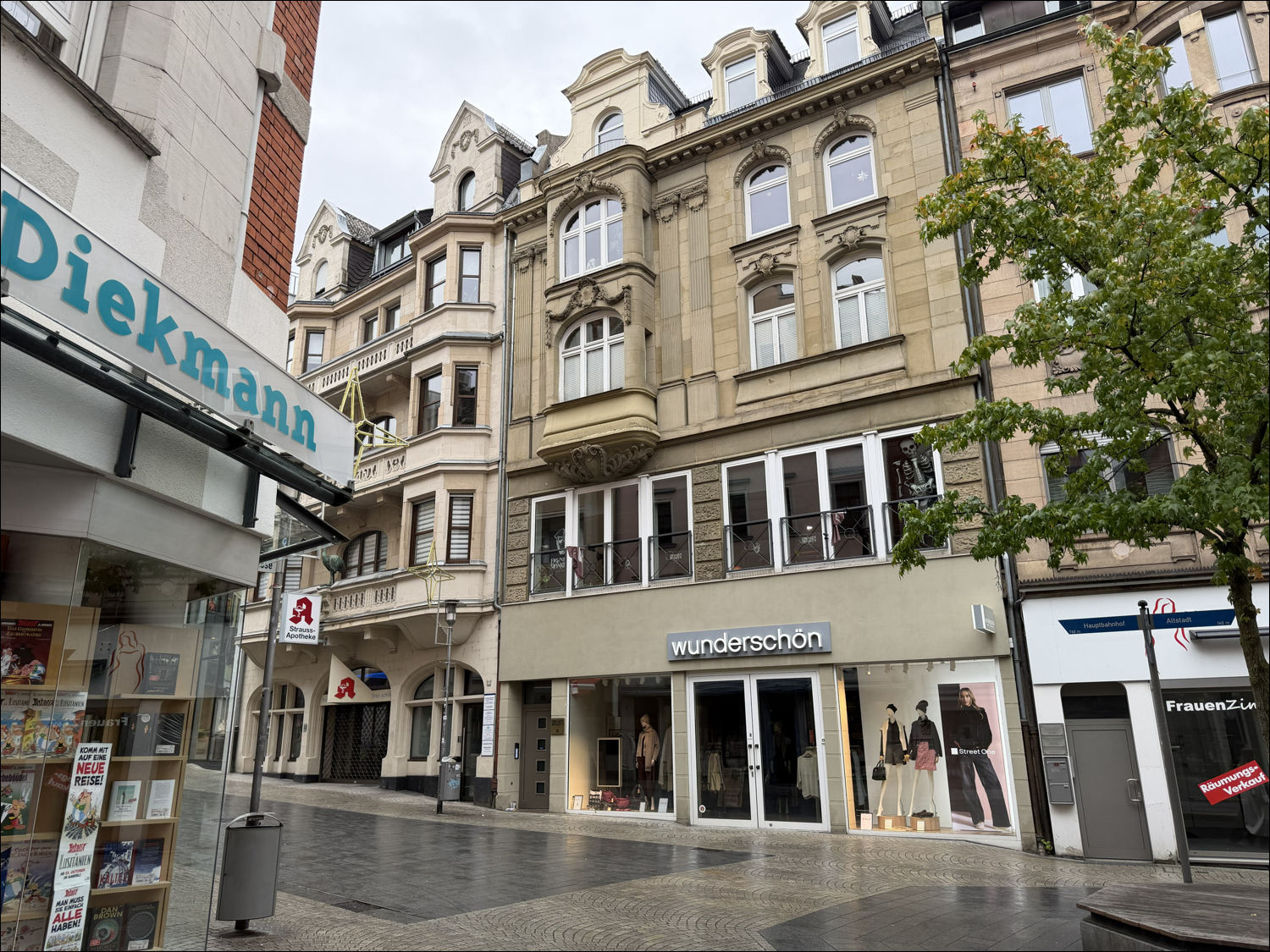 Zum Verkauf steht ein denkmalgeschütztes Wohn- und Geschäftshaus in zentraler Innenstadtlage von Aschaffenburg, direkt in der stark frequentierten Herstallstraße, die wichtigste Einkaufs- und Flanierstraße der Stadt.